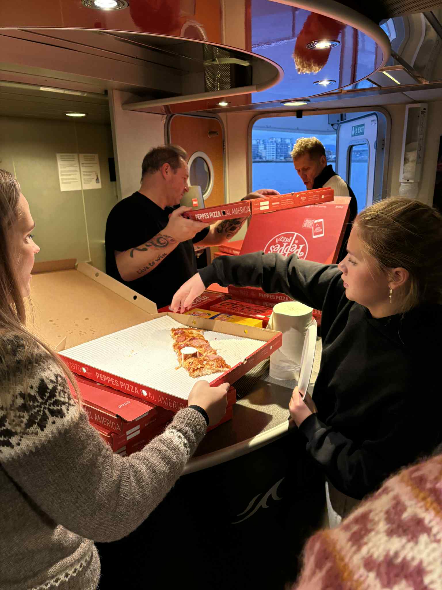 Båtturen hjem gikk som smurt, havet var på vår side og alle kom seg hjem velberget! Vi hadde pizzafest på båten, og takket være mange flotte gevinster fra SpareBank 1 Helgeland så ble det mange glade vinnere i lotteriet vi hadde på turen hjem 🎉
